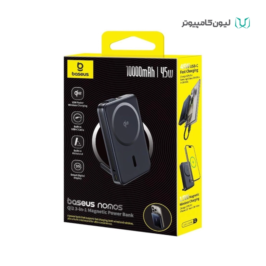 پاوربانک و شارژر بی سیم مگنتی بیسوس مدل Nomos ظرفیت 1۰۰۰۰ میلیآمپر ساعت