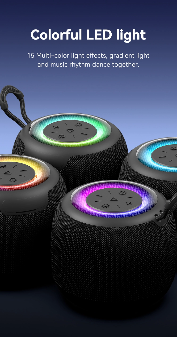 یکی از ویژگیهای جالب در مورد این اسپیکر کوچک این است که 15 رنگ متفاوت برای نورپردازی در نظر گرفته شده که همگام با ریتم موسیقی تغیر میکند. همچنین بر روی اسپیکر 5 دکمه برای تنظیم صدا، توقف و تنظیم نورپردازی وجود دارد که کنترل این دستگاه را آسان میکند و به سادگی میتوانید آن را شخصی سازی کنید.