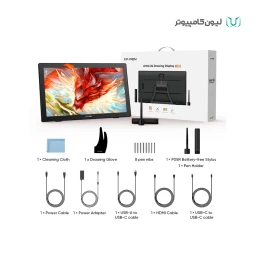 جا قلمی (شامل 8 عدد نوک یدک) / پایه نگهدارنده نمایشگر / کابل USB-C به USB-C / کابل USB-A به USB-C / کابل HDMI / آداپتور برق / کابل برق / دستکش طراحی (Artist Glove) / پارچه تمیزکننده صفحه / دفترچه راهنما