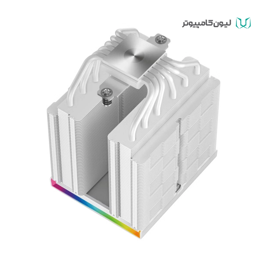 مهمترین بخش این خنککننده، هیتسینک عظیم دو برجی (Dual-Tower) آن است که با وزن قابل توجه (حدود ۱.۵ کیلوگرم)، ظرفیت حرارتی بسیار بالایی را برای جذب گرمای پردازنده فراهم میکند. این هیتسینک با شش لوله حرارتی مسی به قطر ۶ میلیمتر، حرارت را به سرعت از سطح پردازنده جذب کرده و آن را در سطح گستردهای از پرههای آلومینیومی متراکم توزیع میکند. همین مکانیزم ویژه، بخش بزرگی از فرآیند خنکسازی را به صورت غیرفعال (Passive) و با اتکا به سطح وسیع هیتسینک انجام میدهد.