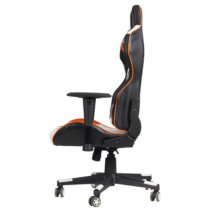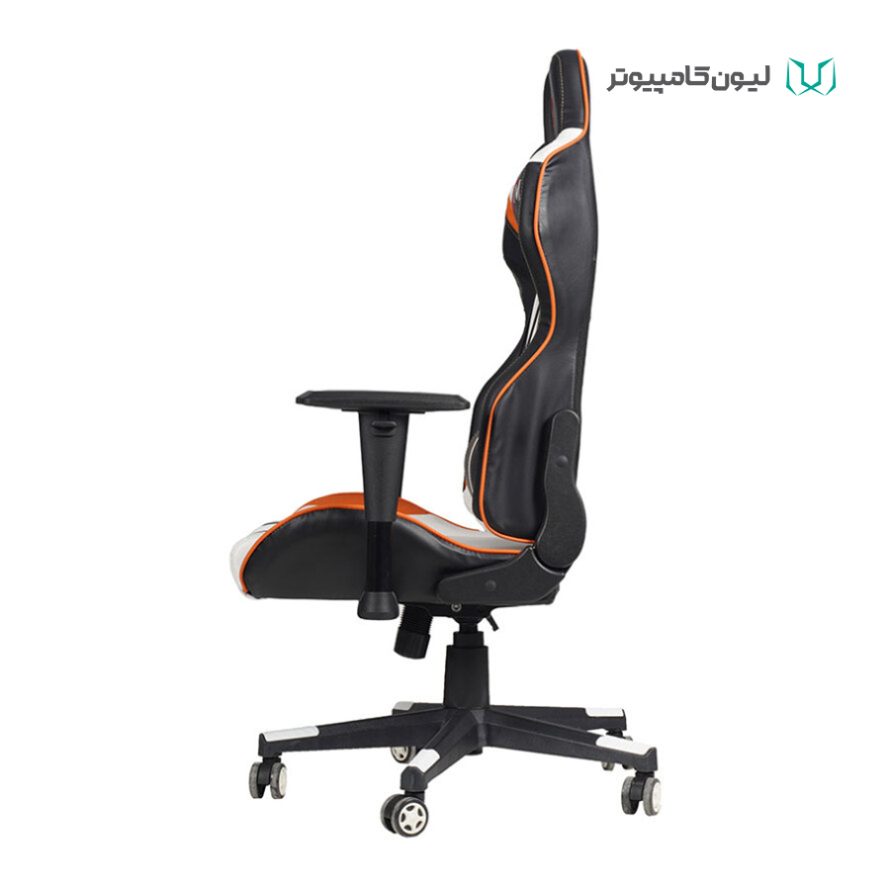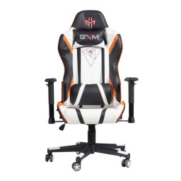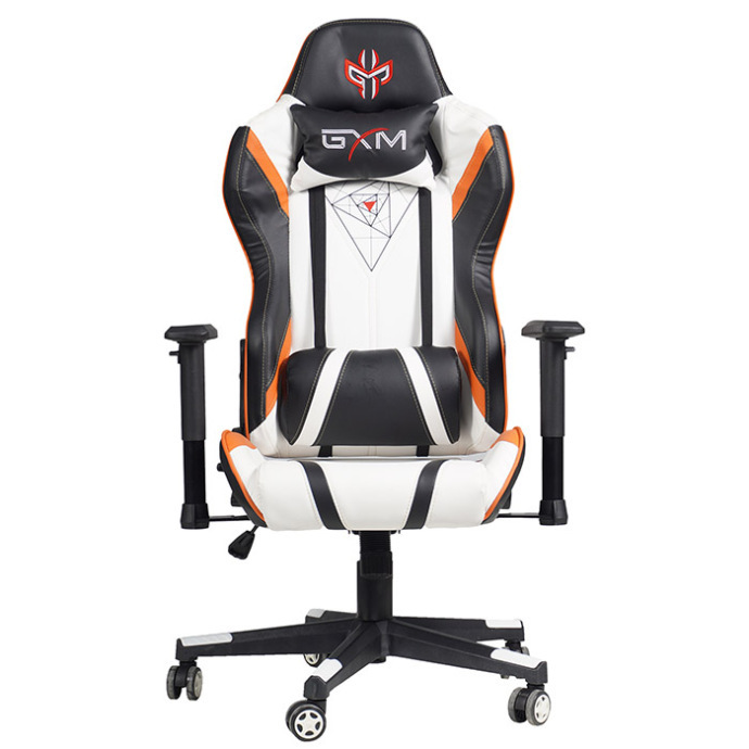 صندلی گیمینگ جی ایکس ام مدل Pyramid حدود 16.5 کیلوگرم وزن دارد و در طرح ترکیبی سفید، نارنجی و مشکی عرضه میشود.