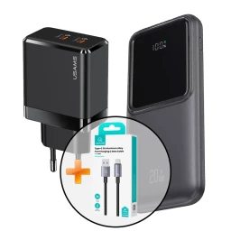 USAMS CD193 Power Bank And CC172 Type-C Charger With SJ663 USB to Type-C Cable