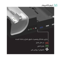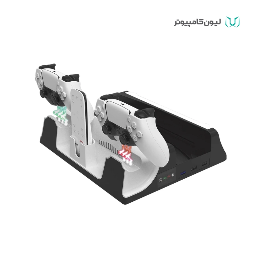 نشانگر LED: دارد / مدت زمان شارژ همزمان دو دسته: 2 ساعت / جنس بدنه: پلاستیک ABS / توان خروجی: 10 وات (5.1 ولت، 0.85 آمپر برای هر دسته) / مجهز به کلید لمسی برای روشن و خاموش کردن فن / دارای صفحه نمایش LCD جهت نمایش وضعیت شارژ / دارای پدهای ضد لغزش در قسمت زیرین / قابلیت تنظیم سرعت فن / دارای سیستم خاموشی خودکار بعد از شارژ کامل / مناسب برای PS5 / PS5 Slim