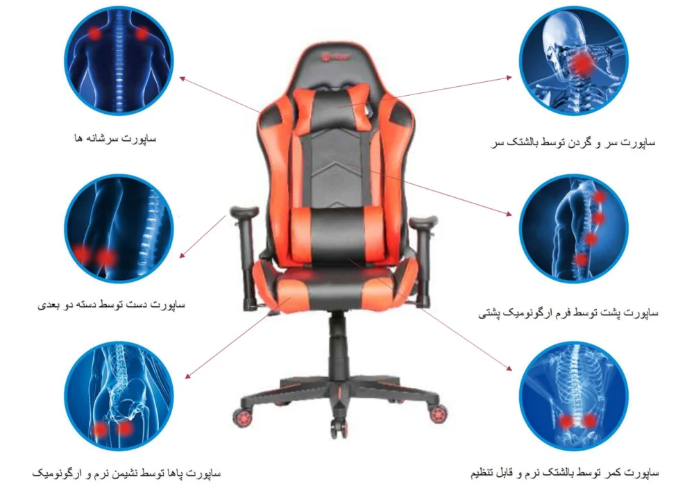 با استفاده از دسته کنار صندلی، میتوان پشتی را در زوایا و ارتفاعهای مختلف تنظیم کرد و هر فرد میتواند به هنگام کار از راحتی و آسایش بهرهمند شود. زیرا دسته صندلی از فوم انتگرال ساخته شده که نرم و راحت بوده و در برابر سایش و آسیب فیزیکی مقاوم است. گودی طراحی شده بر روی پد دسته، محلی راحت برای قرارگیری دست را فراهم میکند. با این طراحی، تسلط بیشتری در هنگام بازی خواهید داشت و فشار کمتری به دست در مدت زمان طولانی وارد خواهد شد.