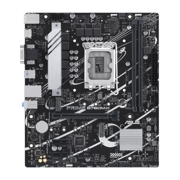 مادربرد ASUS PRIME B760M‑R D4 یک مادربرد اقتصادی و کاربردی از سری PRIME ایسوس است که برای پردازندههای Intel Core نسل 12، 13 و 14 طراحی شده است. این مادربرد با پشتیبانی از رم DDR4، اسلات PCIe 4.0 و حافظههای NVMe پرسرعت گزینهای مناسب برای سیستمهای خانگی، اداری و گیمینگ اقتصادی محسوب میشود.