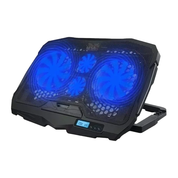این پایه خنک کننده مجهز به چهار فن با سایزهای متفاوت است که به شکل استراتژیک زیر سطح لپتاپ قرار گرفتهاند. دو فن بزرگ در مرکز برای خنکسازی قطعات اصلی مثل CPU و GPU و دو فن کوچکتر برای تهویه اطراف لپتاپ. این ترکیب باعث میشود خنککنندگی یکنواخت و کارآمدی داشته باشید.