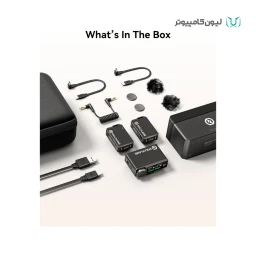 اقلام همراه: کیس شارژ - دو عدد فرستنده - یک عدد گیرنده - کابل USB-C به USB-A - کابل USB-C به USB-C - کابل USB-C به Lightning - کابل 3.5 میلی متری TRS - کیف یا جعبه نگهداری (Storage Case) - دو عدد پوشش ضدباد / دارای یک صفحه نمایش لمسی رنگی AMOLED / اندازه صفحه نمایش: ۱.۱ اینچی/ امکان تنظیم دستگاه با دکمه قابل چرخش ۳۶۰ درجه / پشتیبانی از چند حالت ضبط صدا / محدوده دینامیکی ورودی: 98 دسی بل / سطح فشار صدا: 120 دسی بل / حافظه داخلی ۸ گیگابایتی برای پشتیبانی از ۱۴ ساعت ضبط / میکروفون مجهز به فناوری MaxTimbre / طراحی مغناطیسی