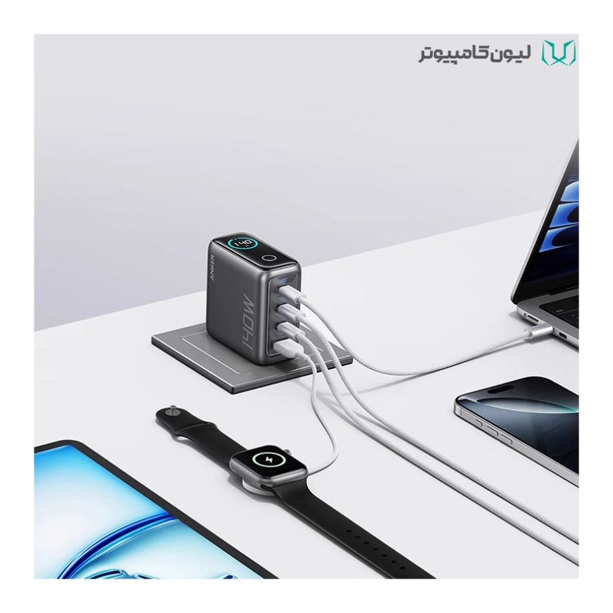 قابلیت شارژ همزمان 4 دستگاه / پشتیبانی از PD 3.1 / پشتیبانی از فناوری GaN / دارای نمایشگر لمسی داخلی (نمایش توان خروجی هر پورت و دمای دستگاه بهصورت لحظهای) / سیستم ایمنی ActiveShield 2.0