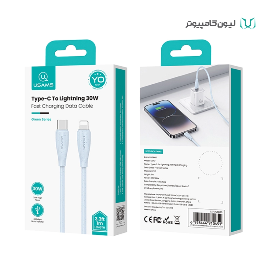 کابل تبدیل Type-C به Lightning یوسمز مدل SJ717 طول 1 متر