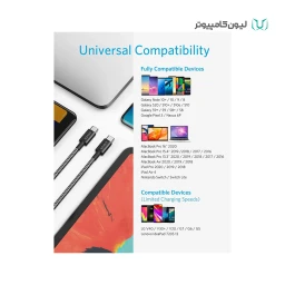 The Smart e-Marker Chip (مدیریت جریان و ولتاژ برای شارژ بهینه) / سازگاری: انواع گوشیهای هوشمند و لپتاپ با قابلیت شارژ USB-C / مقاومت: 12000 بار خم شدن