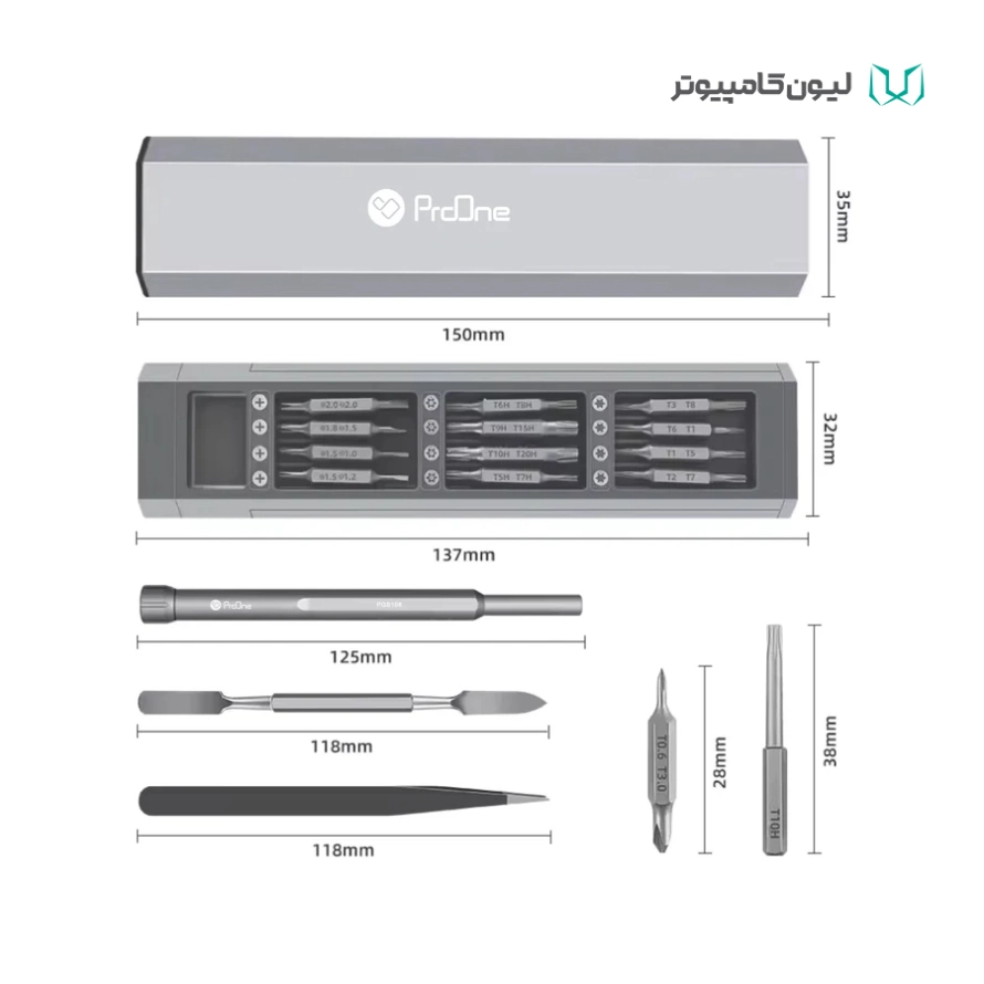 - دارای ابزارهای جانبی مانند پنس، میله بازکن و دیسک مکنده مناسب پیچهای گوشی، عینک، ساعت، لپتاپ، کنسول