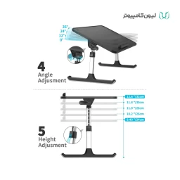دارای نگهدارنده قابل جابه جایی / قابلیت تنظیم زاویه / طراحی مخصوص برای استفاده در حالت خوابیده یا روی تخت / قابل استفاده: برای لپ تاپ ، تبلت ، آی پد و … / سطح ضد لغزش