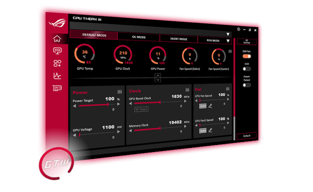 GPU Tweak III: با سومین نسخه از برنامه GPU TWEAK ایسوس، فرآیند تنظیم کارایی کارت گرافیک را به مرحله بالاتری میبرد. این نرمافزار با رابط کاربری به روز رسانی شده و کاربردی خود اجازه تغییر پارامترهای مهم کارت گرافیک را از جمله فرکانس پردازنده گرافیکی، فرکانس حافظه و تنظیمات ولتاژ به کاربر میدهد. مشاهده وضعیت اجزای اصلی کارت گرافیک ایسوس Phoenix GeForce GTX 1630 4GB به صورت آنی، کنترل پیشرفته فنها و قابلیتهای بیشمار دیگری نیز در این نرمافزار تعبیه شدهاند که به کمک آنها میتوانید از حداکثر توان کارت گرافیک خود بهرهمند شوید.