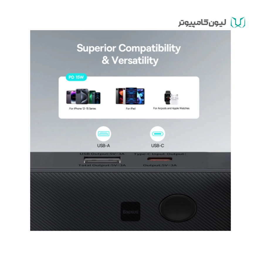 درگاه خروجی: یک عدد USB-C و یگ عدد USB-A